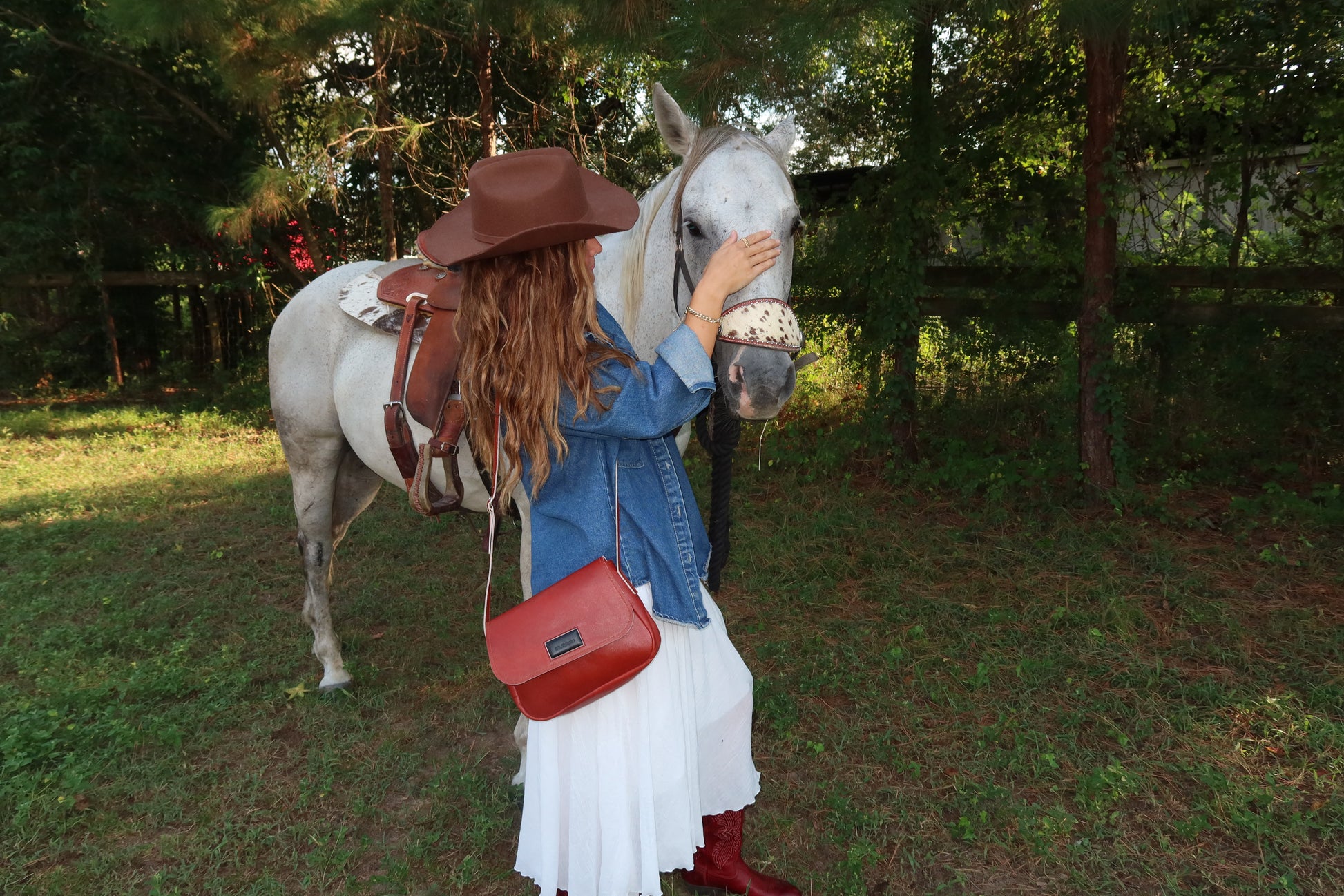 This bag is mid-size perfection with a true natural red tinted brown leather. Perfect for Fall!