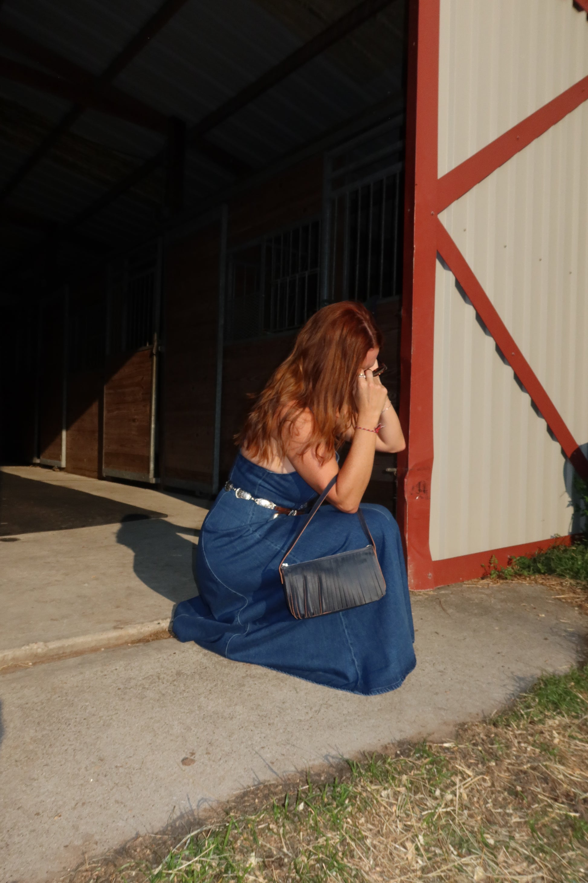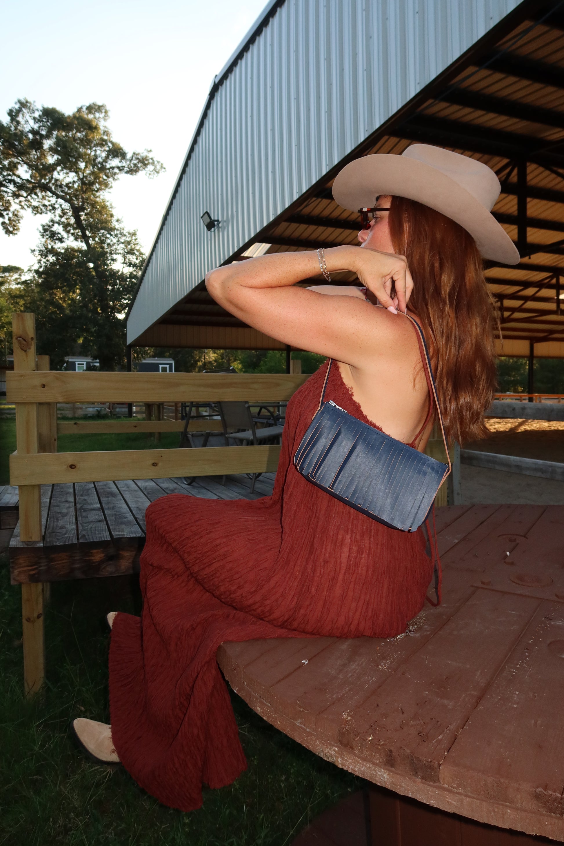 This shoulder bag is perfect to fit all your dinner accessories with fringe on the exterior and an interior pocket. All bags will have an interior pocket. Perfect for Fall!
